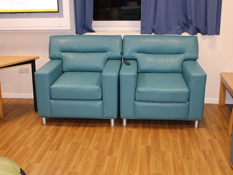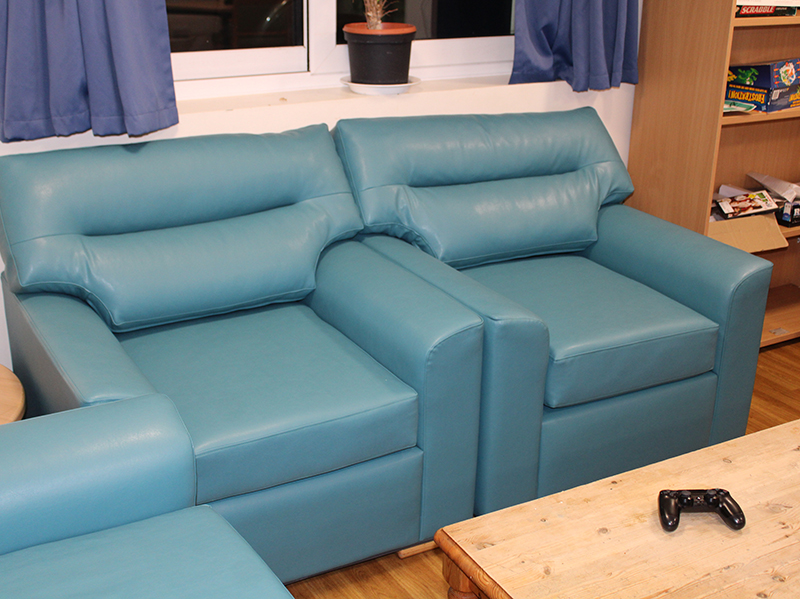 These chairs were two styles in very dark colours which made the lounge look drab and uninviting and the NHS ward were considering disposing of them and purchasing six matching armchairs.