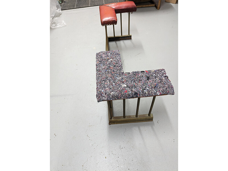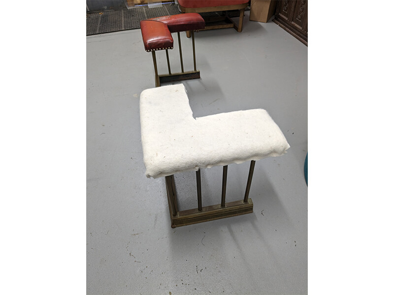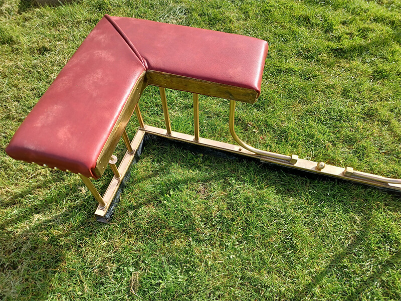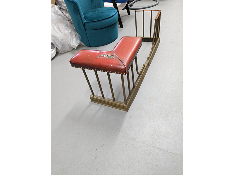 For the upholstery, we selected a premium, exceptionally thick piece of saddlery leather, chosen for its robustness and ability to withstand years of use. This high-quality leather not only complements the fender’s elegant brass finish but also ensures it can endure the rigours of daily life, much like the original artisans intended.