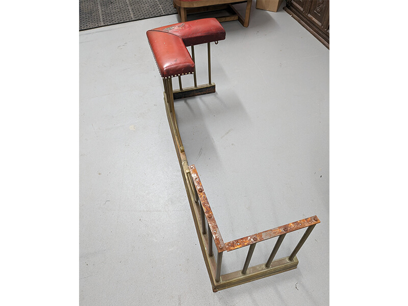 This exquisite red brass Victorian fire fender is a beautifully restored original piece, radiating the charm and craftsmanship of a bygone era. Over time, the original leather upholstery had succumbed to the natural wear and tear of age, losing its functionality and appeal. To breathe new life into this timeless artifact, we undertook a meticulous refurbishment process, ensuring it retains its historical integrity while enhancing its durability.